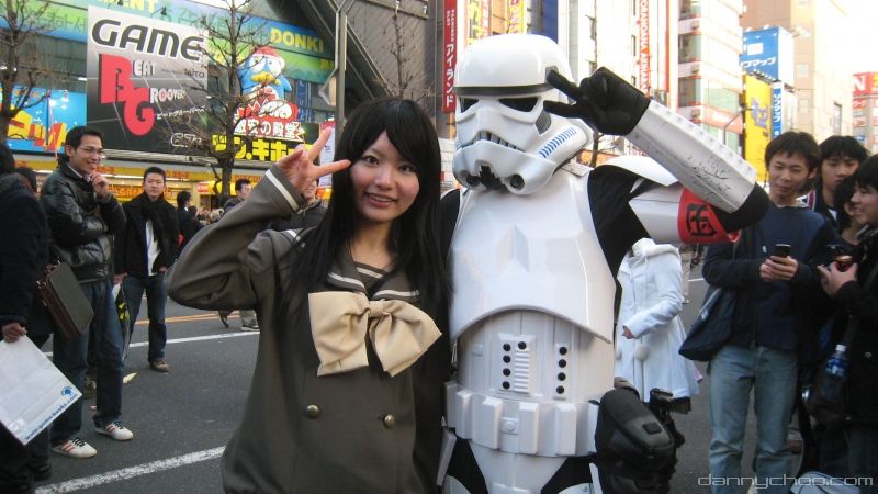 I just love Akihabara when the road is closed off to traffic. Yesterday was a public holiday when the main road becomes a Hokousha Tengoku (whats a Hokousha Tengoku?) A ton of cosplayers come out to play and some of them are really cute like this Shana.