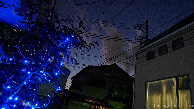 Outside our house getting some fresh n cold evening air. Interesting to see how more n more Japanese folks are putting up lights outside their house.