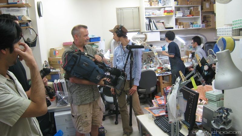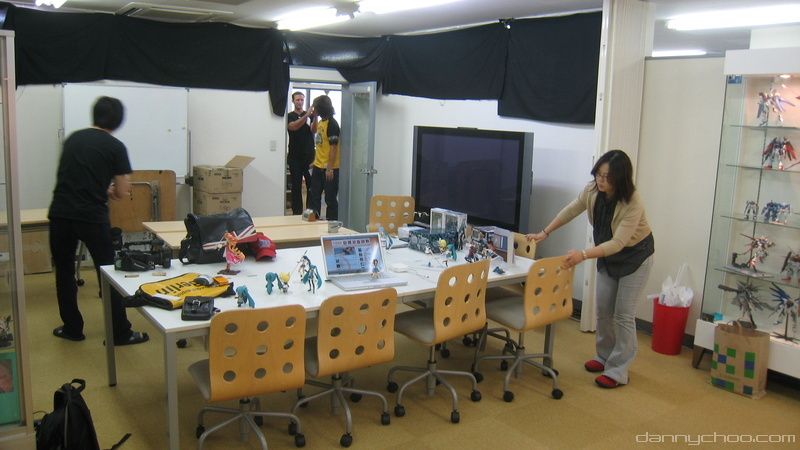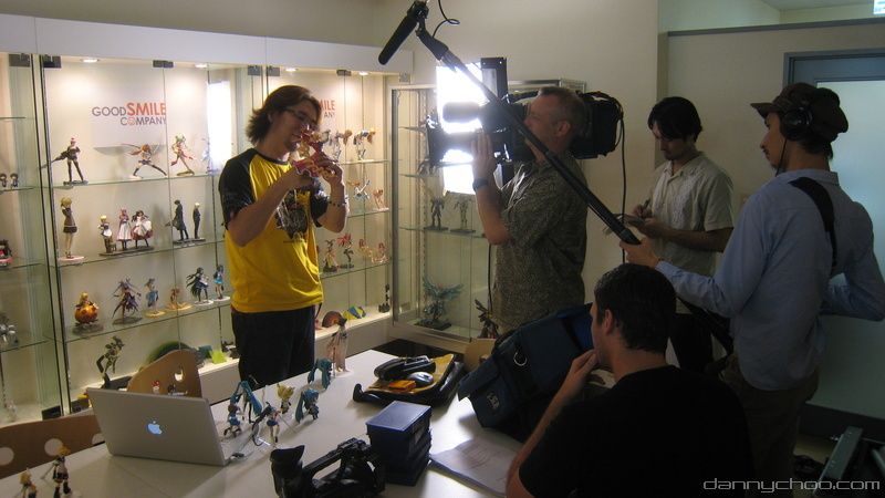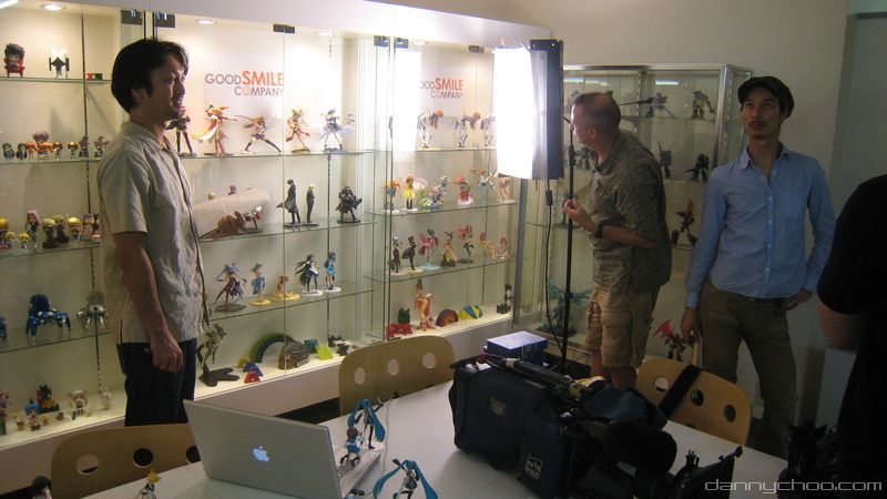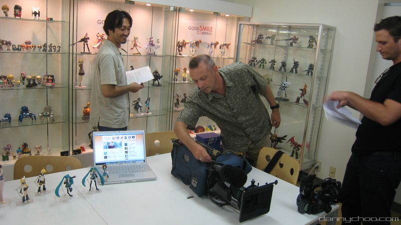 9:40AM. The comrades from a US TV station arrive to shoot behind the scenes at Good Smile. Here we go over where the camera will go and what can/cant be filmed.