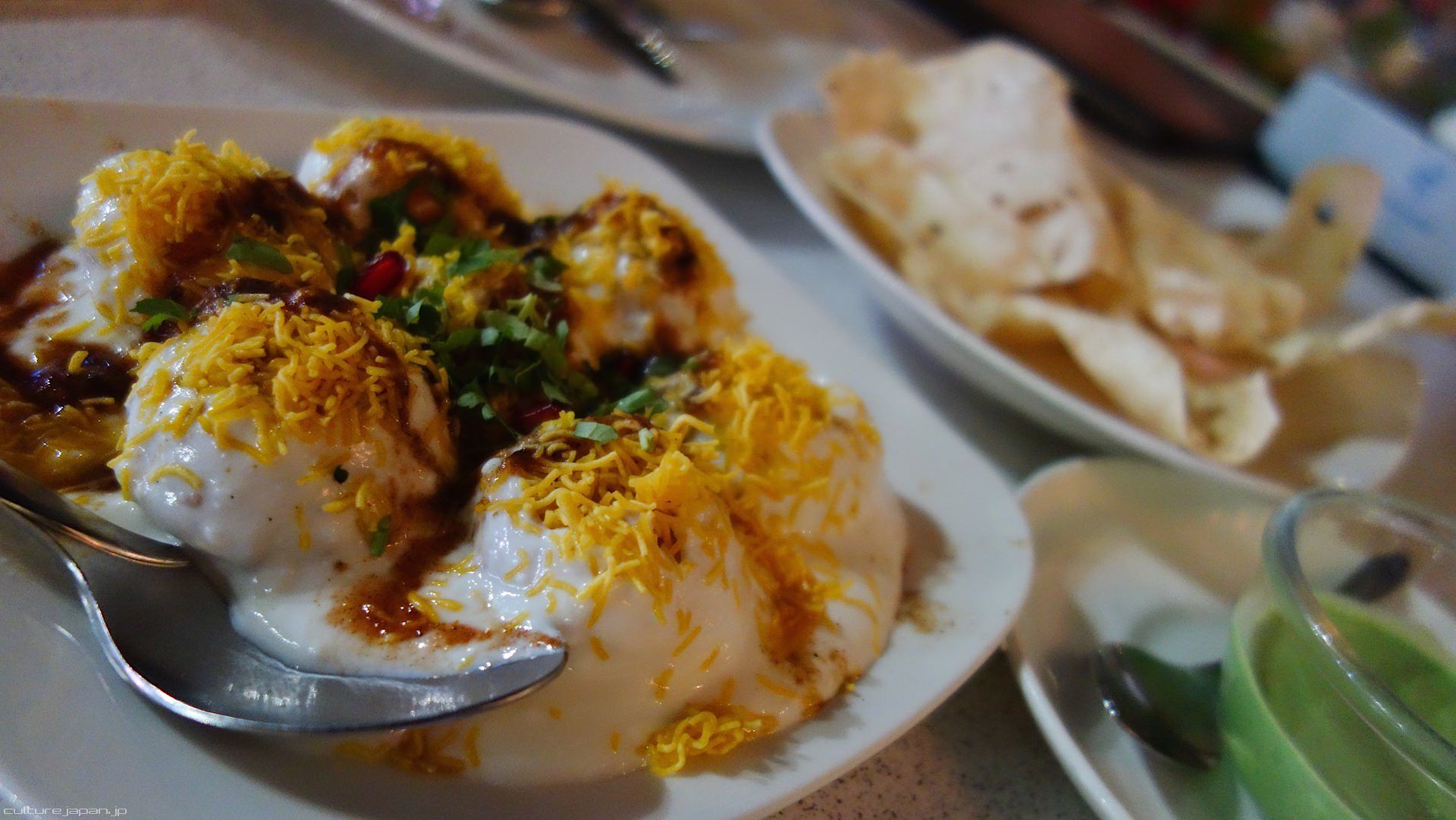 At an Indian restaurant which always reminds me of my childhood upbringing.