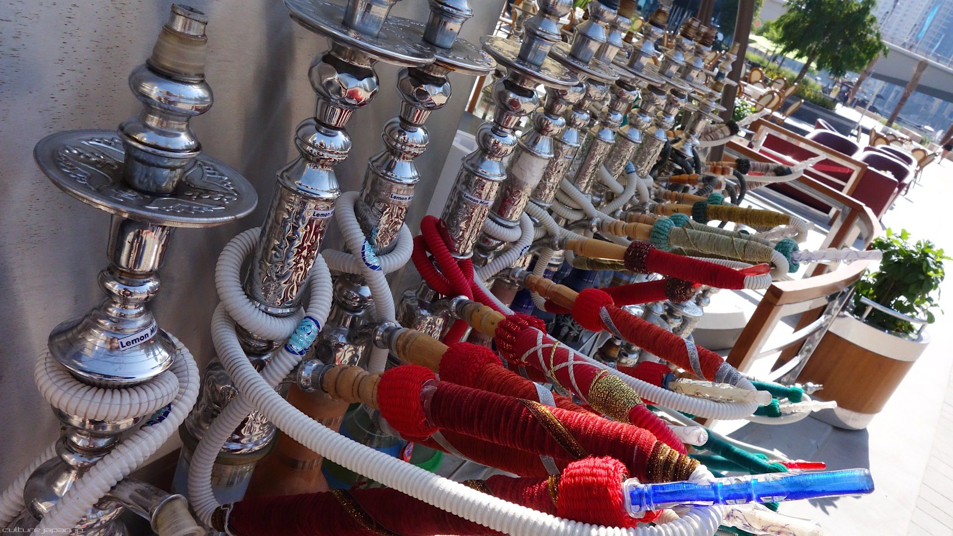 Shisha (also known as Hookah) is a waterpipe which vaporizes herbs and leaves through hot water placed inside.