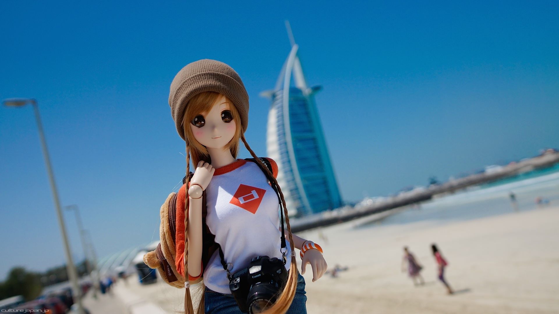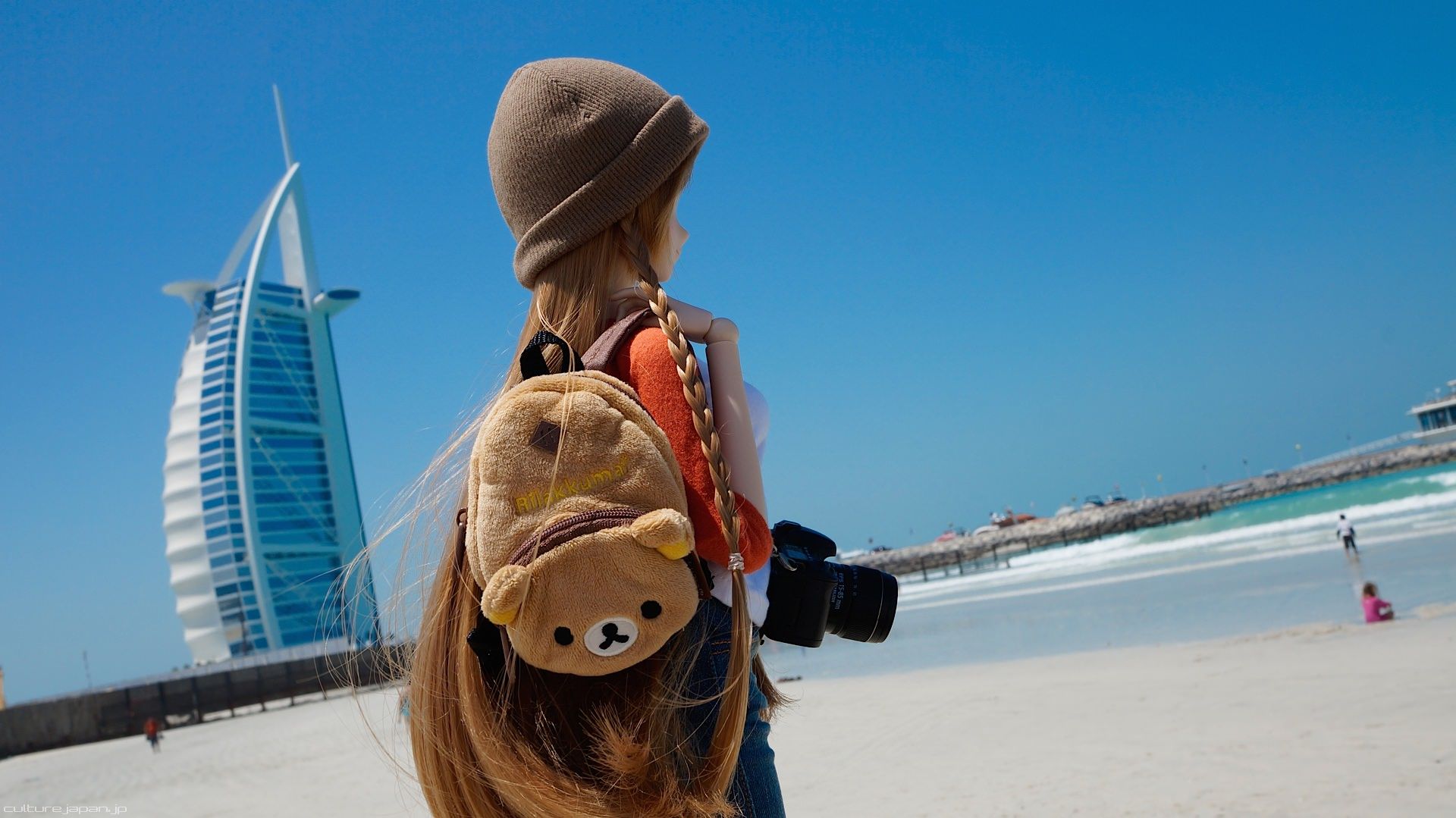 Mirai-chan checking out the Burj Al Arab - apparently also known as the world's only 7 star hotel.