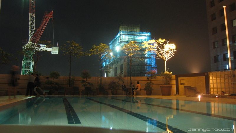 Getting a few laps at the open pool on the rooftop of the hotel. Water was freezing.