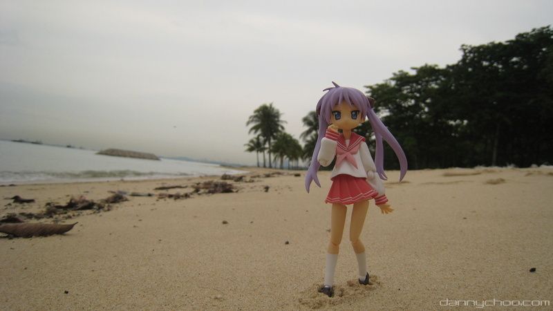 Kagami takes a stroll on the beach.