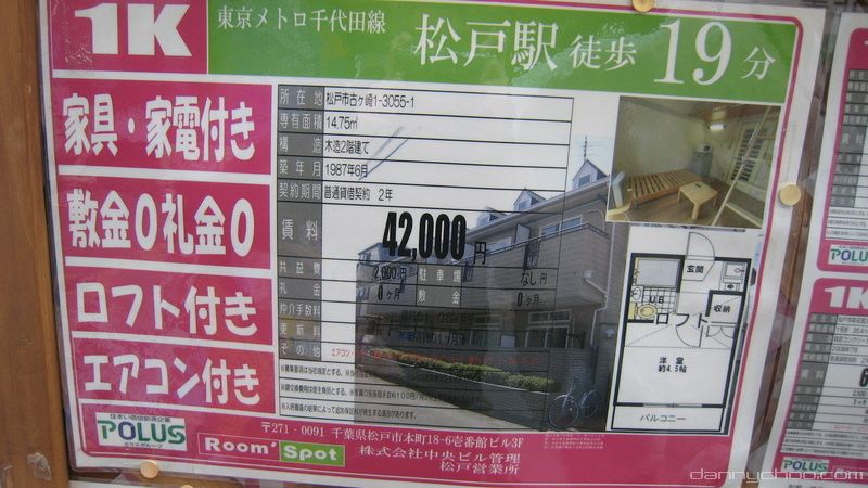 42000 yen per month. No key money or deposit required and comes complete with furniture and a loft - very rare indeed.