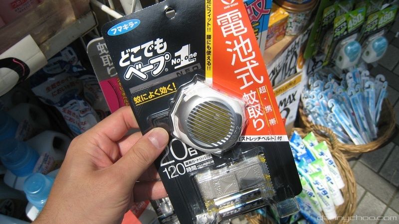 Tis the jolly season for mosquitoes too. This device is worn on your ankle or wrist and emits a sonic pulse (or something similar) that keeps away the mosquitoes. 1000 yen.