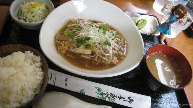 Hmmm. I can't remember what food this was but remembering it tasting good and cheap - 760 yen for a meal for two. Three if you count Haruhi.