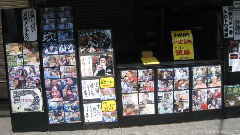 These are actually signatures from famous Japanese celebrities. The restaurant sticks them on the wall like a trophy as a sign of "this famous person ate here meaning our grub tastes good." I saw one by Brad Pitt in an Okonomi Yaki place once ^^;