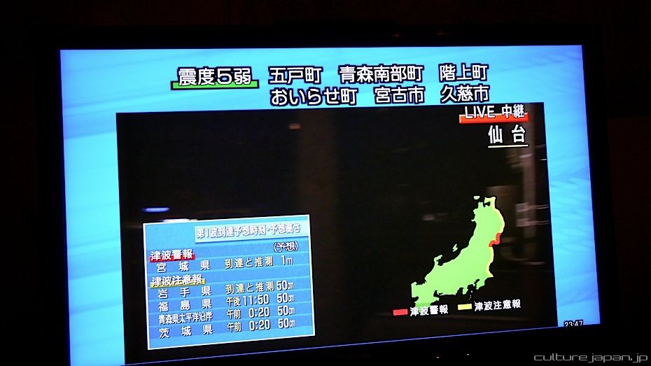We've had about 2 large scale quakes since the 3/11 quake. When that happens, most programs switch to the news with a map of Japan in the corner to highlight any tsunami warnings.