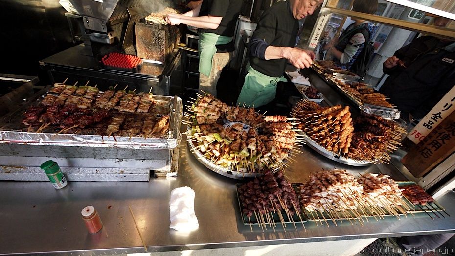 Grabbing some Yakitori on the way back to base. 150 yen each.