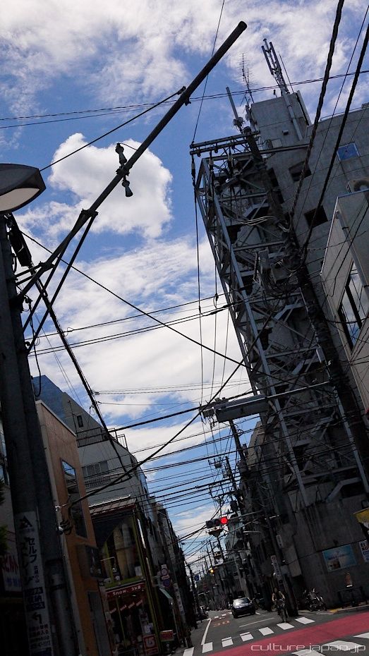 Somewhere on the back streets of Gotanda. Some old rubbing along with the new.