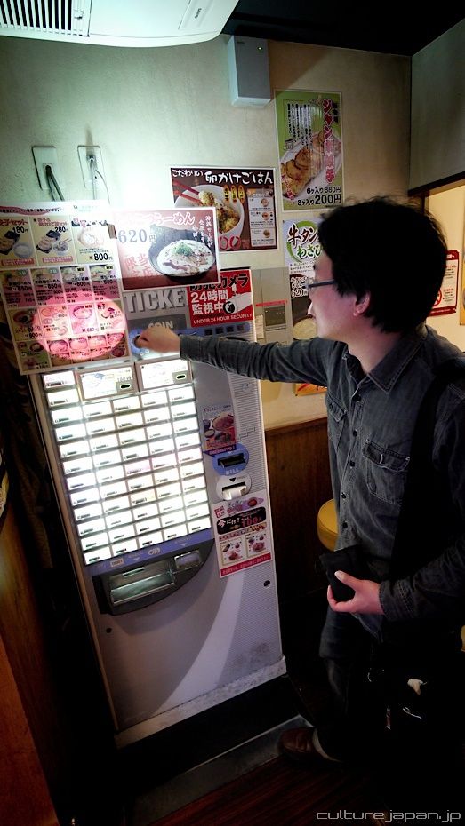 Grabbing tickets at the vending machine for ramen.