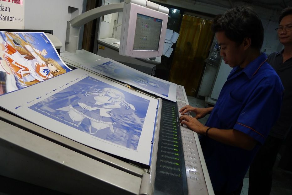 Heidelberg. This is to ensure that the printed poster matches the digital data as closely as possible. Each design is calibrated several times until the standard is matched.