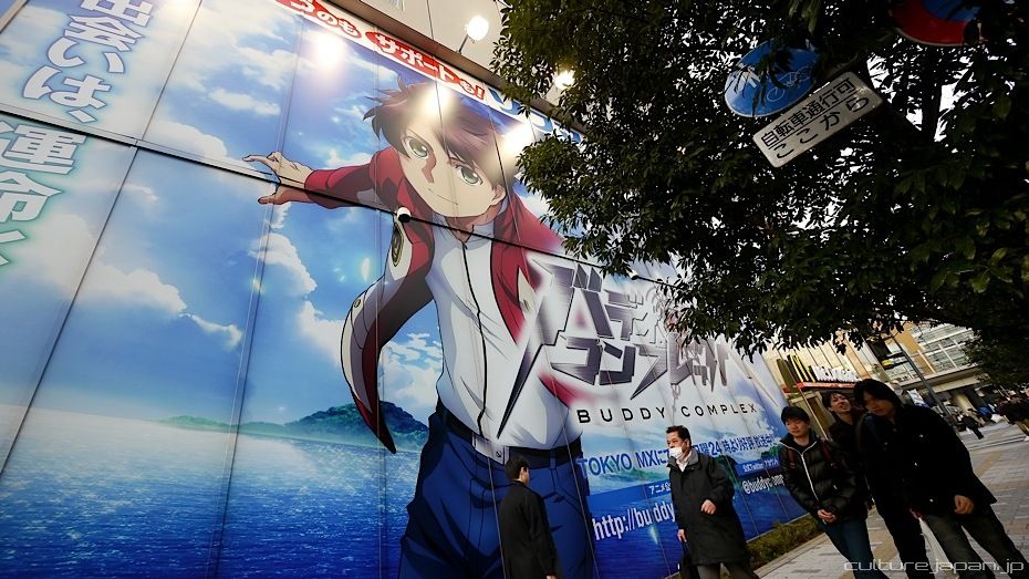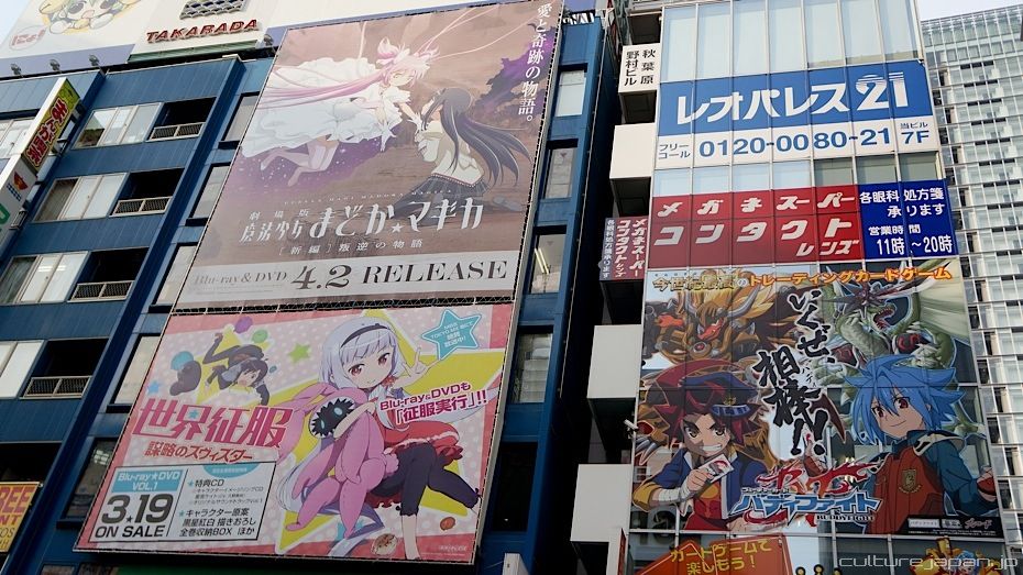 View of Chuo-dori and its ever-changing anime billboards.