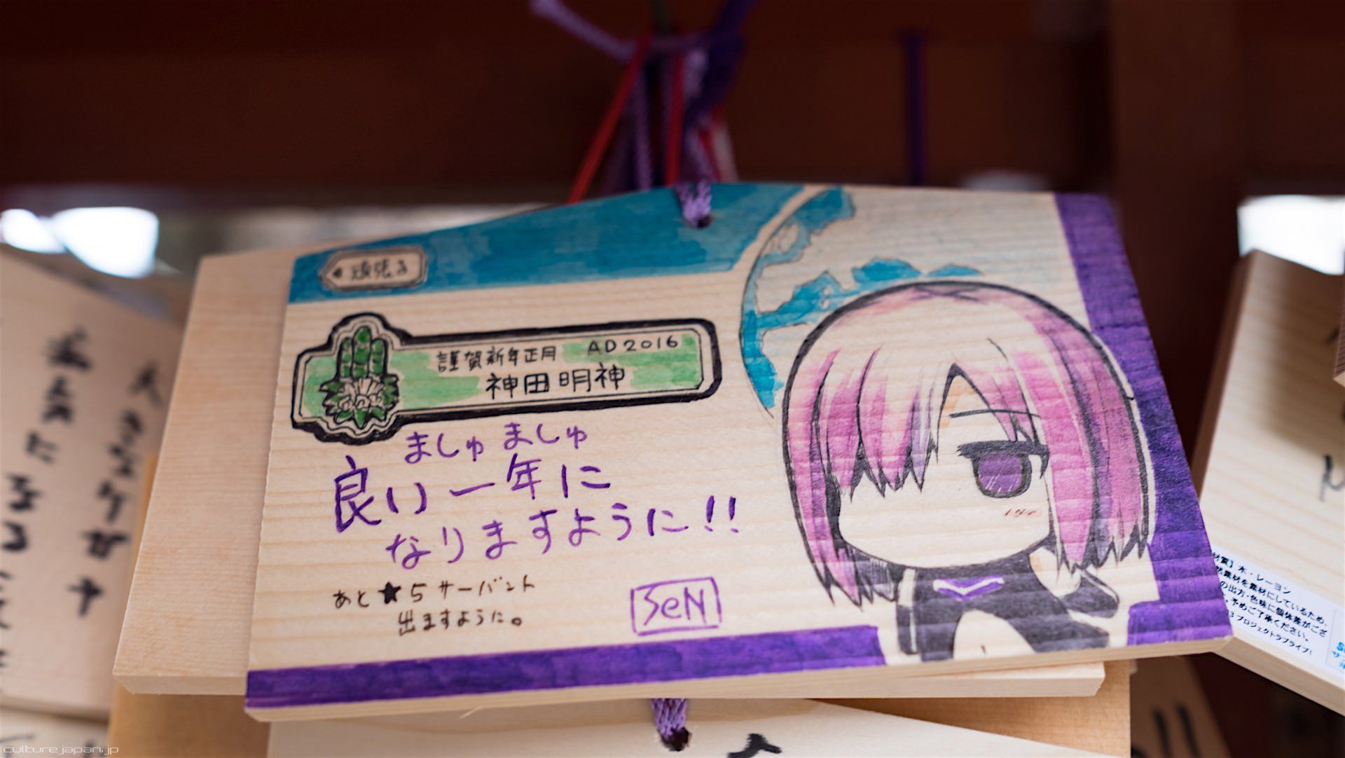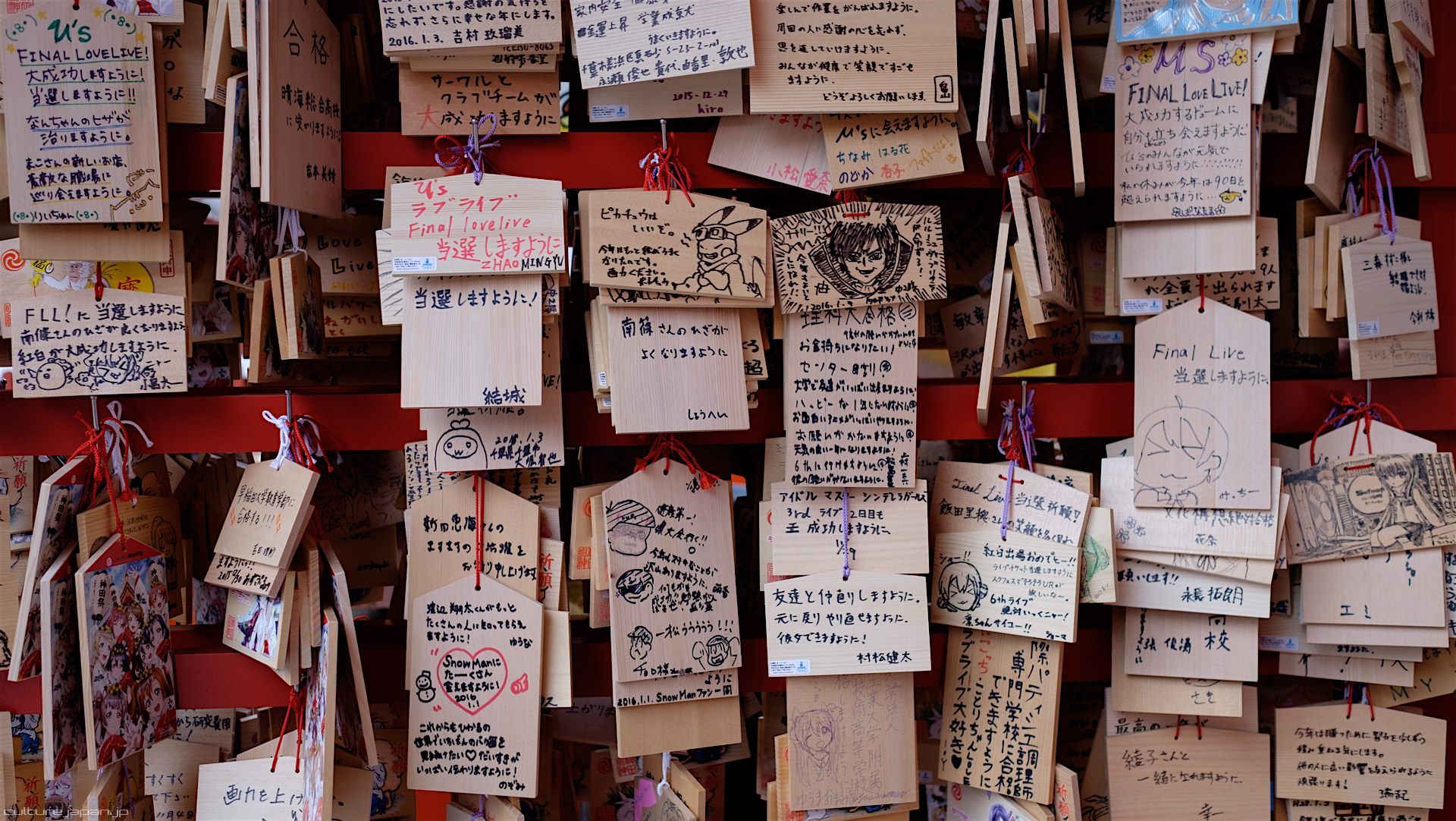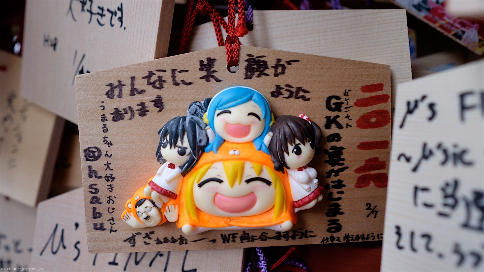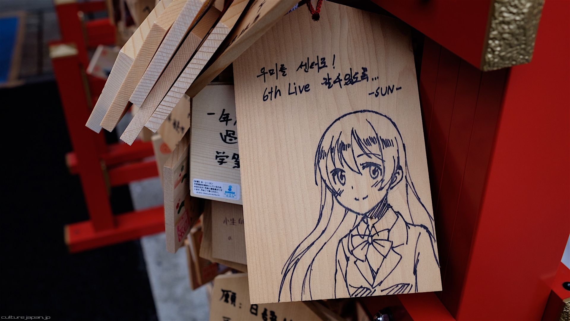 Kanda Myojin - for the past few years it has been the tradition of many otaku anime fans to draw their fave character on an Ema and hang it up in the shrine grounds together with a wish. These particular Ema are known as Ita-Ema .