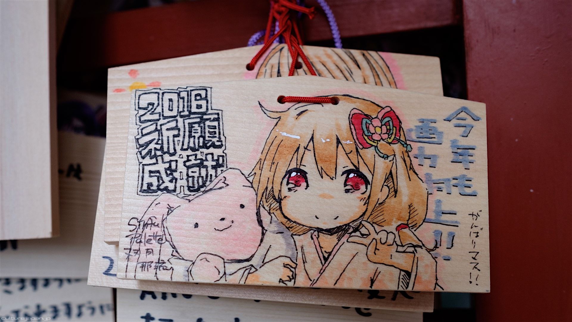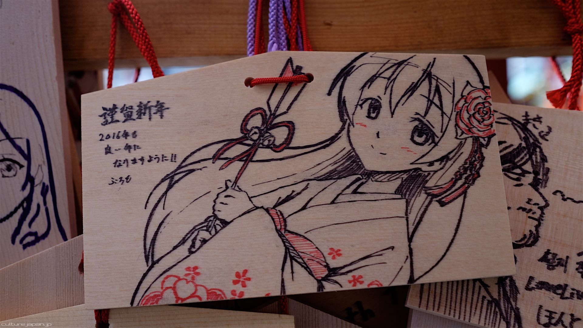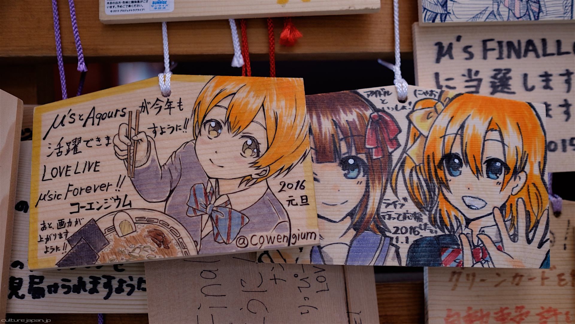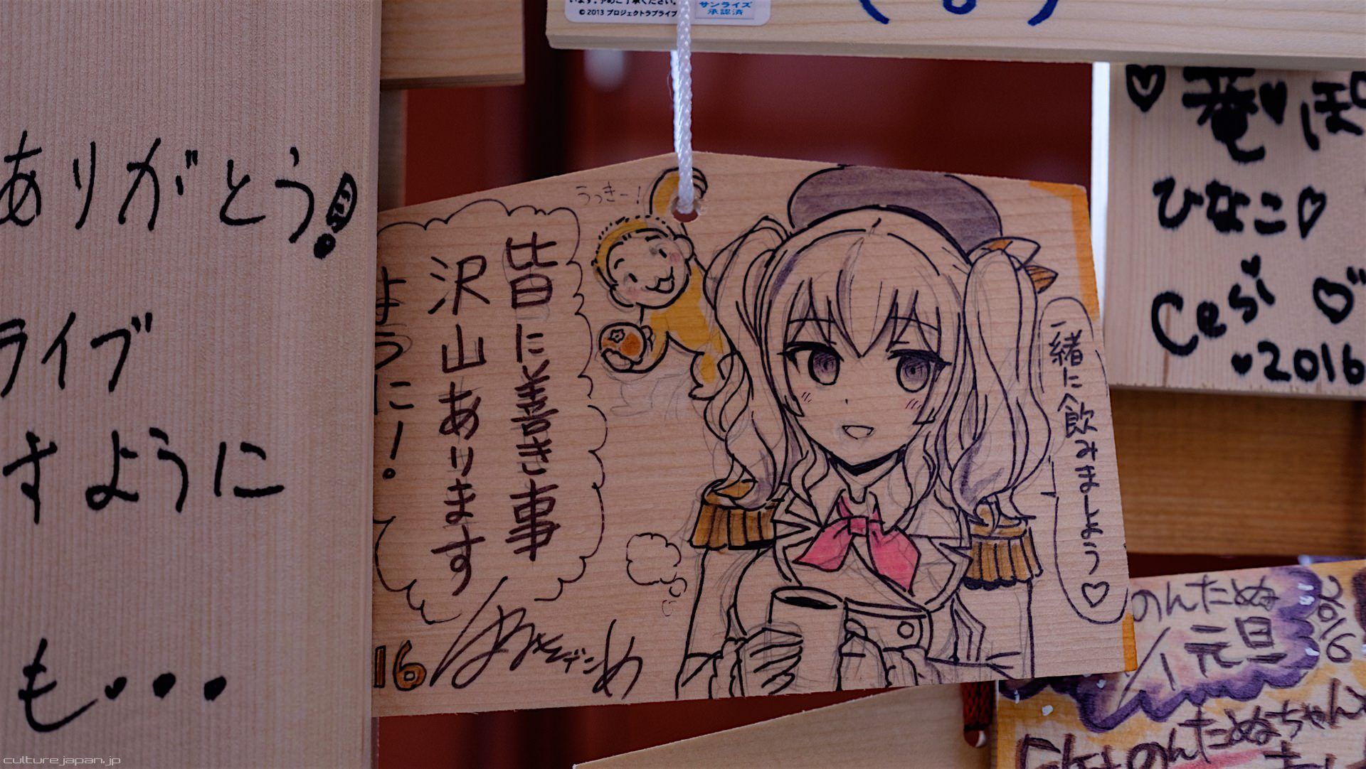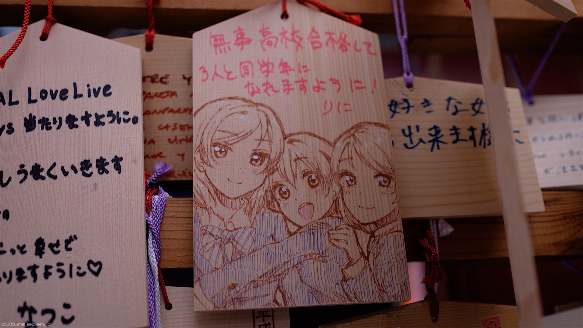 Kanda Myojin - for the past few years it has been the tradition of many otaku anime fans to draw their fave character on an Ema and hang it up in the shrine grounds together with a wish. These particular Ema are known as Ita-Ema .