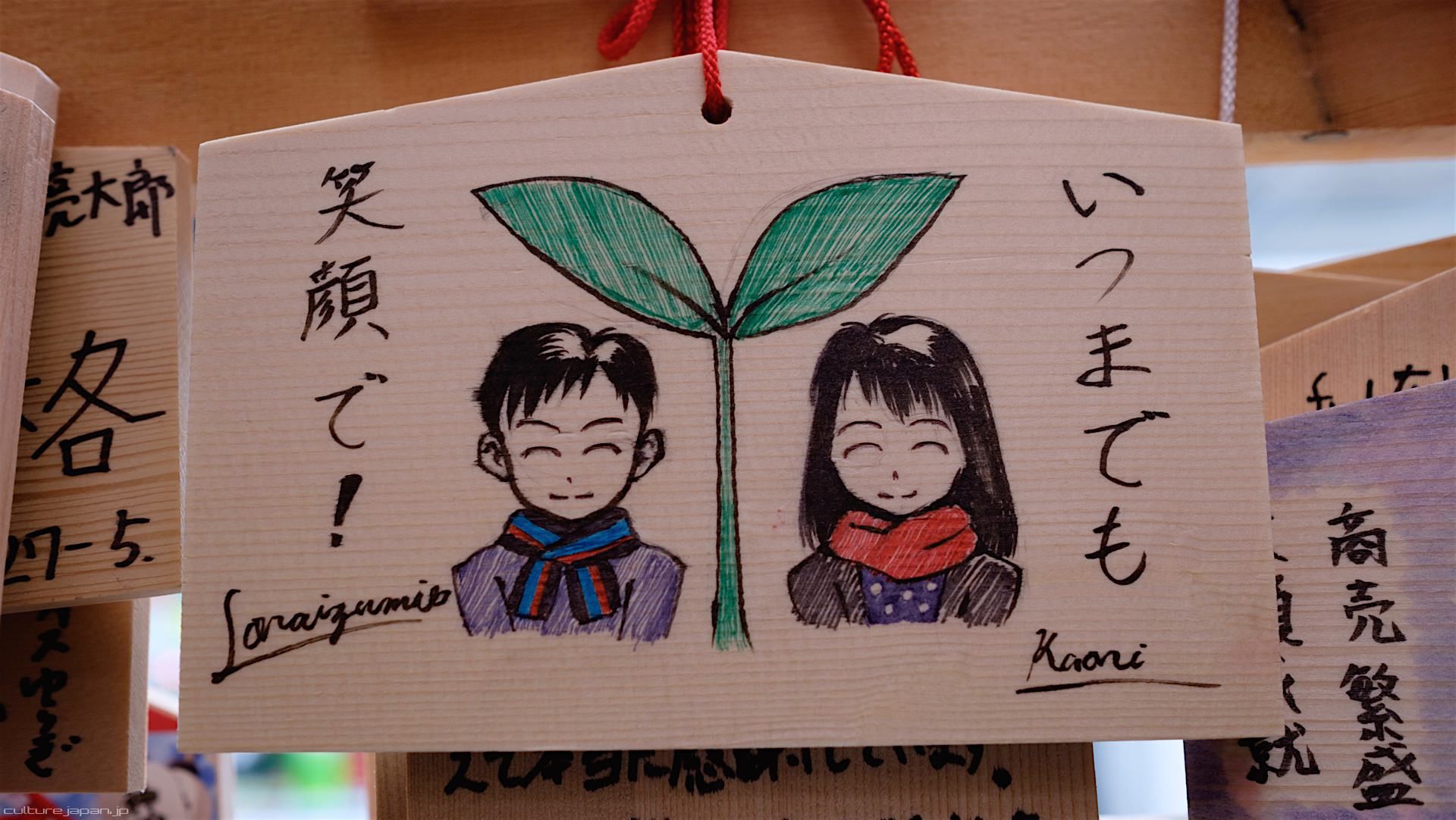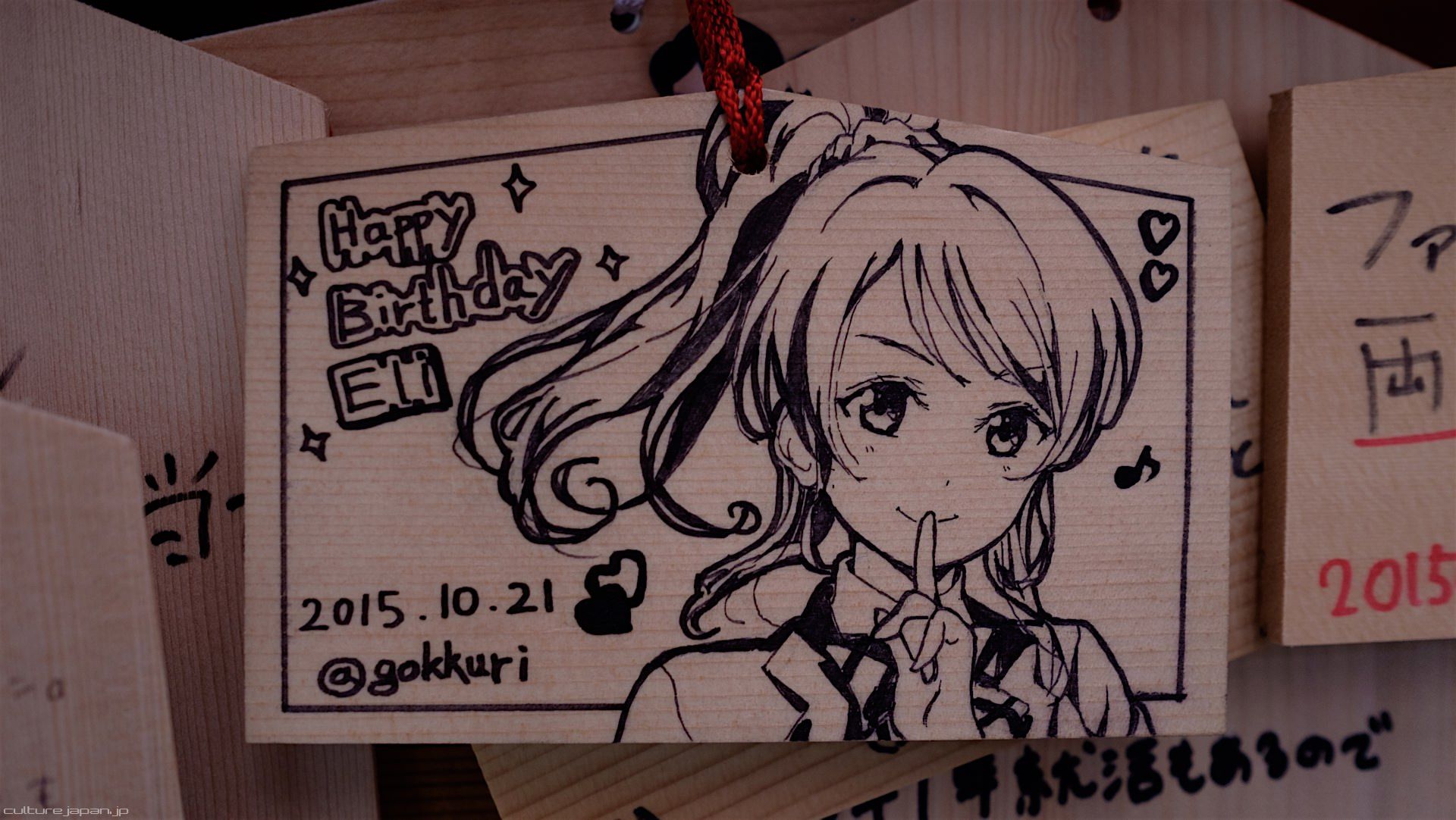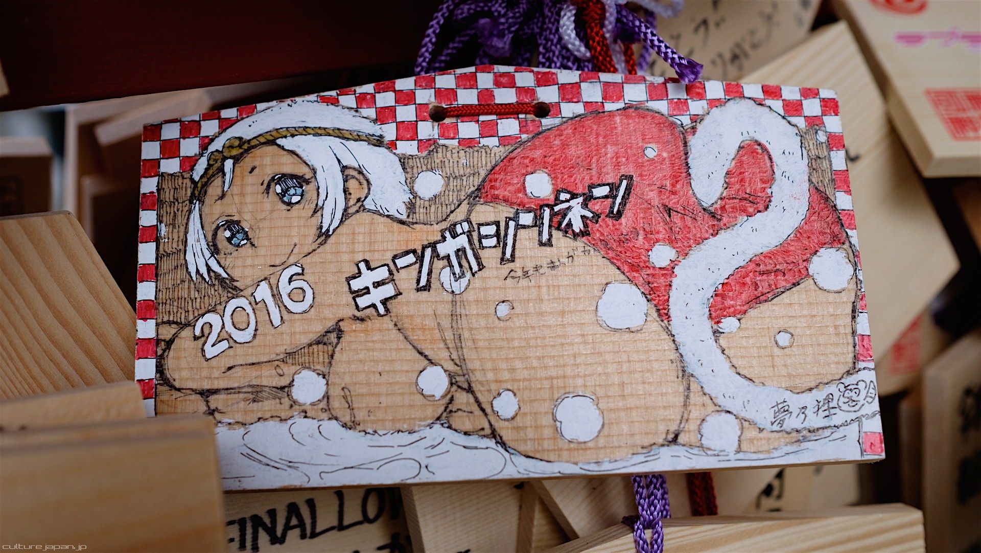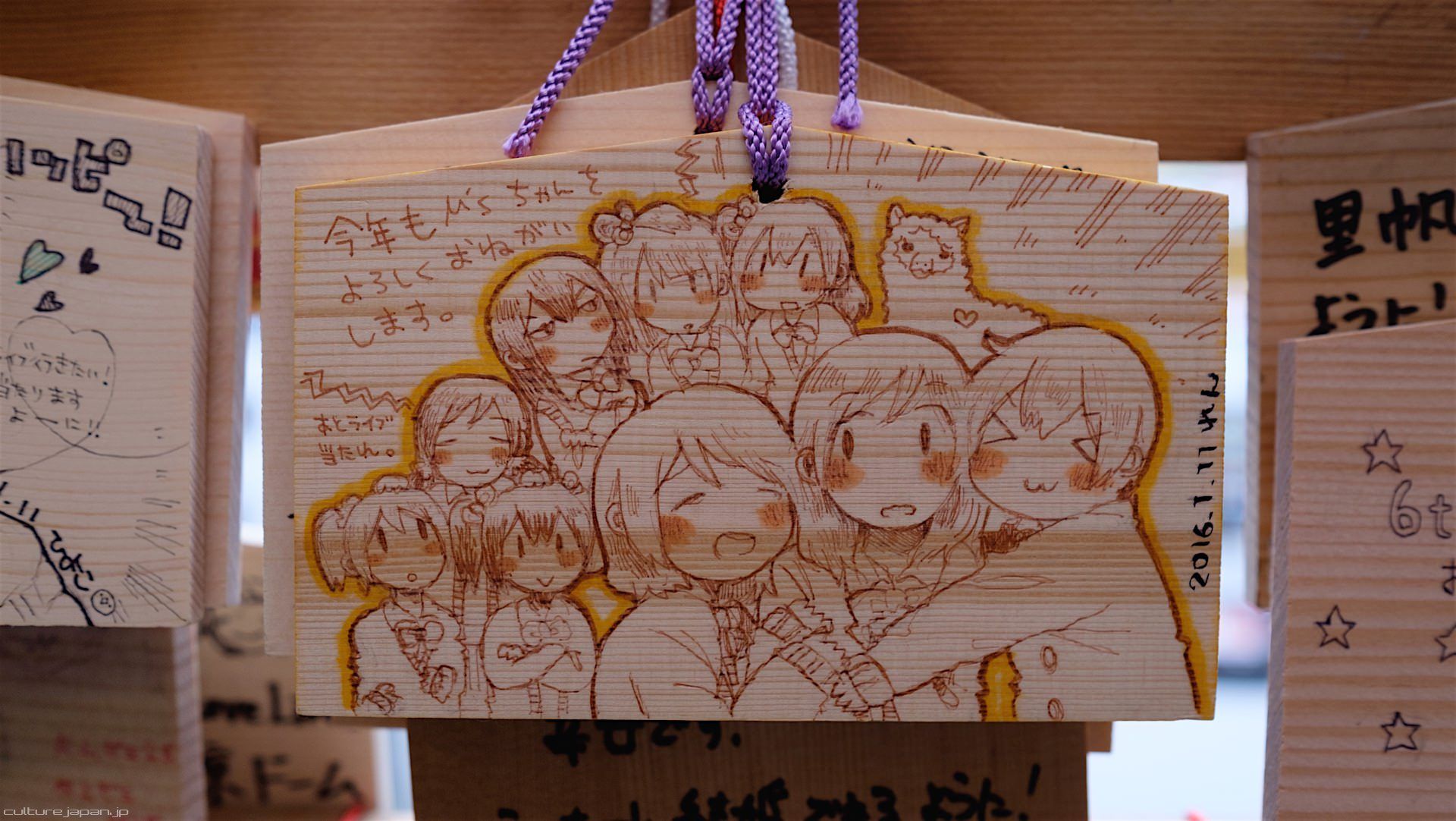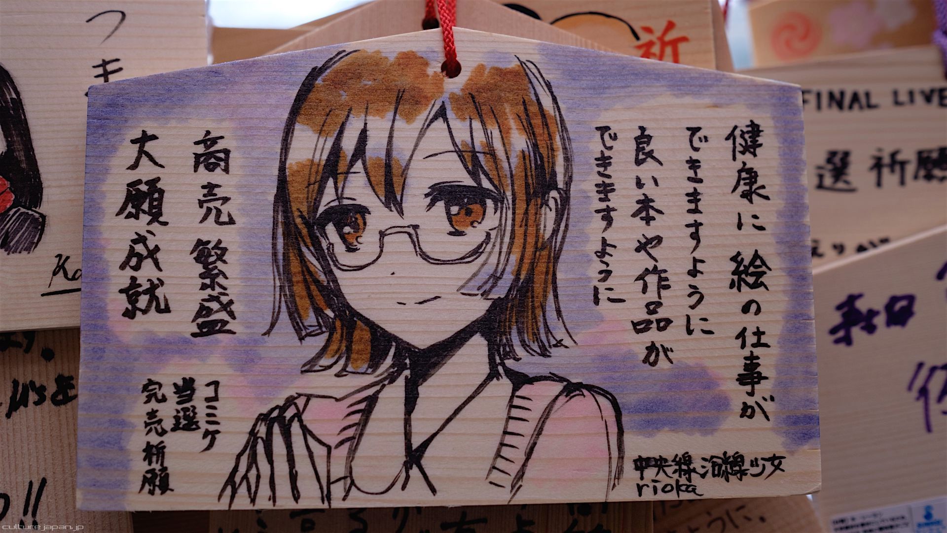 Kanda Myojin - for the past few years it has been the tradition of many otaku anime fans to draw their fave character on an Ema and hang it up in the shrine grounds together with a wish. These particular Ema are known as Ita-Ema .