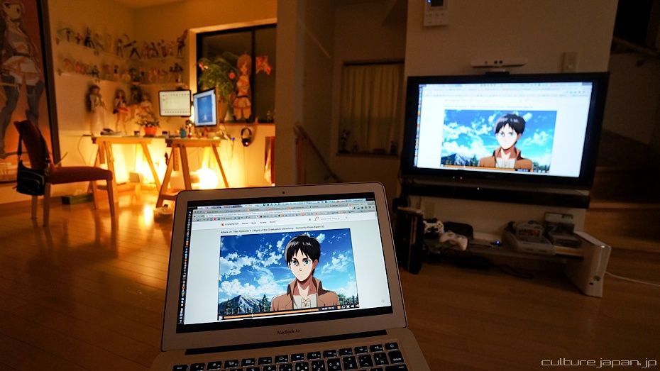 When I forget to record/watch Shingeki every Sunday at 11:30PM, I get to catch up on Crunchyroll using Apple TV to steam to my TV ^o^