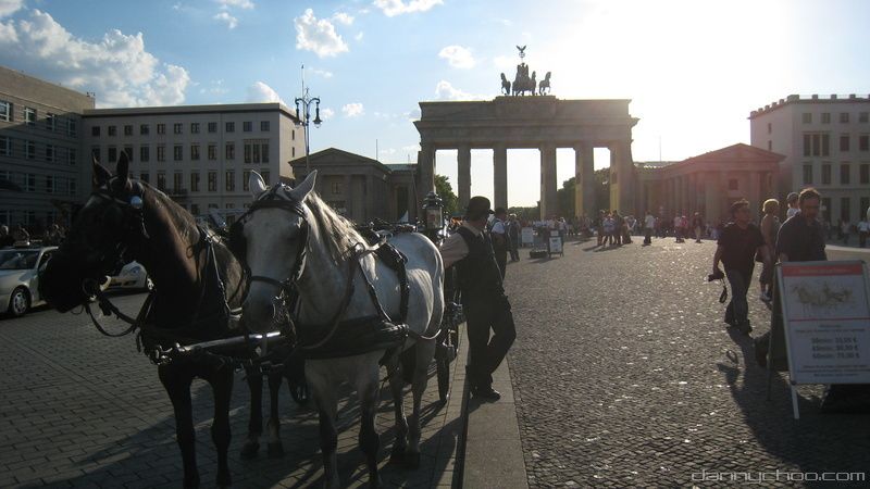 This is Brandenburg Gate - a former city gate and one of the main symbols of Berlin.