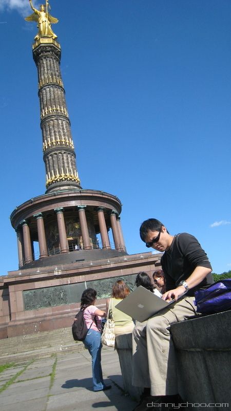 Catching up on project progress with my developers over IM outside the Victory Column. Berlin (and Hamburg) was covered with Wifi everywhere - not free though.
