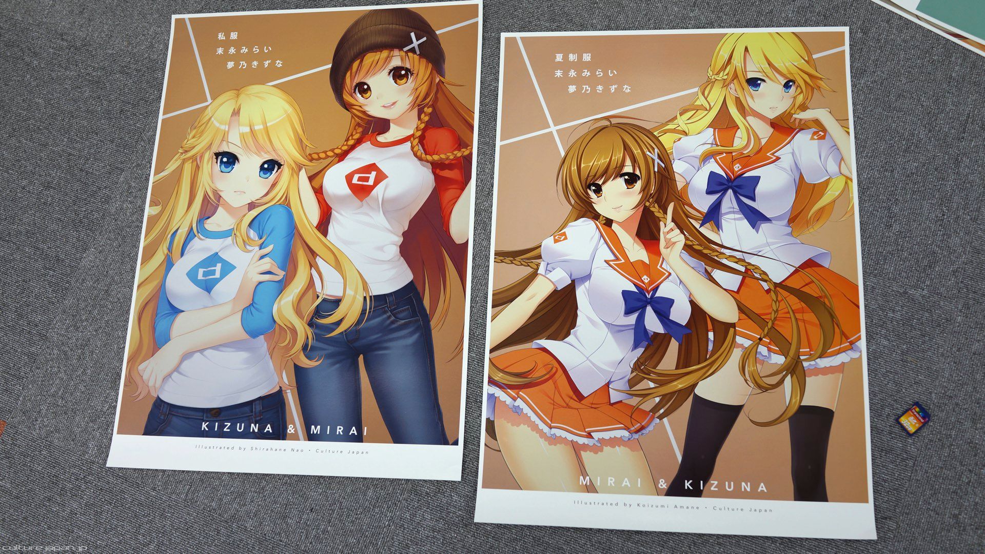 Kizuna & Mirai combo on the left illustrated by DMYO-sensei, Mirai & Kizuna combo on the right illustrated by Koizumi Amane-sensei.