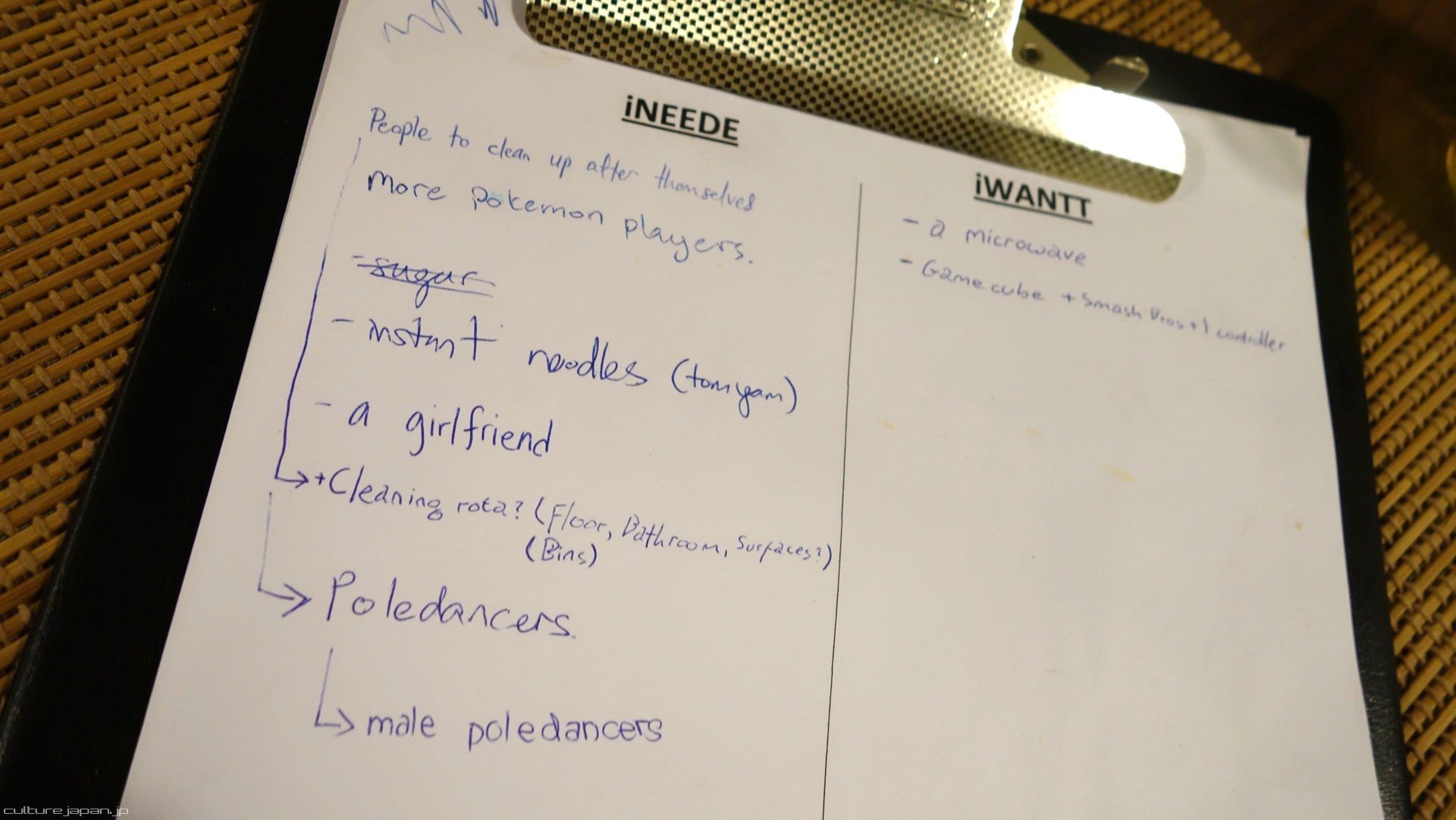 At the time, the CF team had just moved in and here is a list of the wants by the staff.