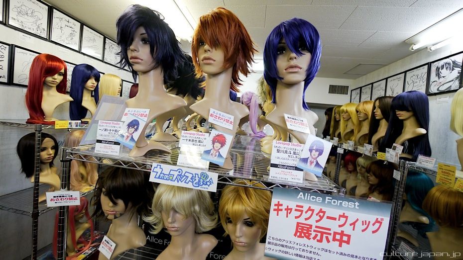 Taking a gander at a load of anime wigs in a cosplay shop called Lovepop Studio. These wigs being an essential part of cosplay but what about everyday life?