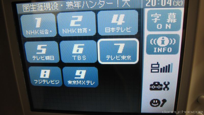 The channel select is on the touch screen. When you first turn it on, you go through a few screens by selecting which part of Japan you are in. It then goes and searches for all the channels.