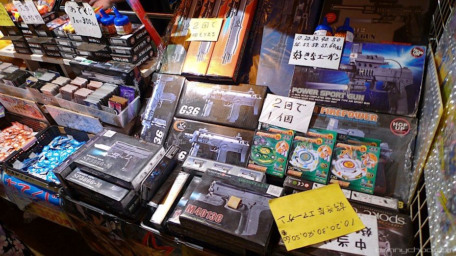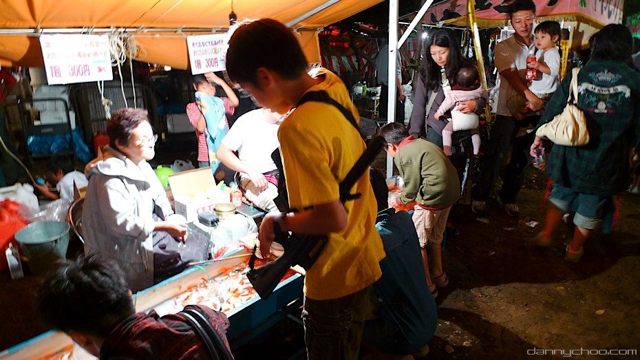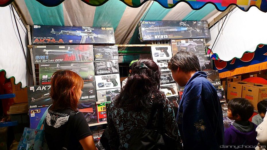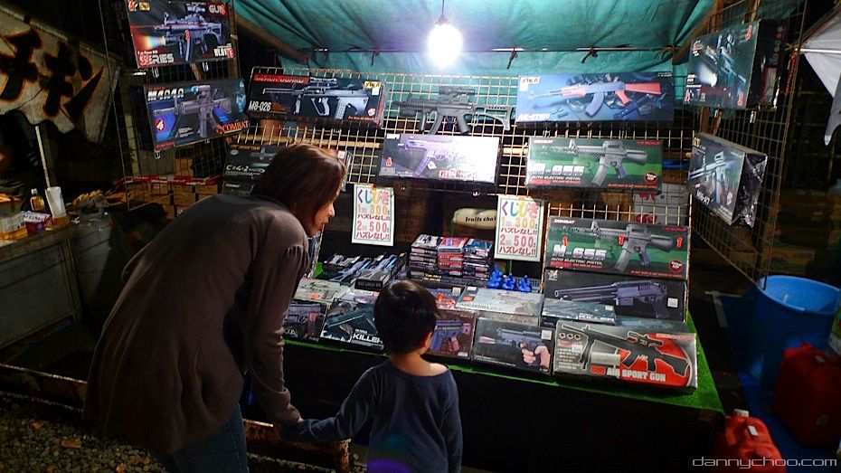 While the normal folk are not allowed to carry guns, there seems to be no law against carrying replica air guns which are readily available. All these photos are taken at matsuri where these air guns are generally aimed at young boys. You will often see buys running around with airguns at the festivals too.