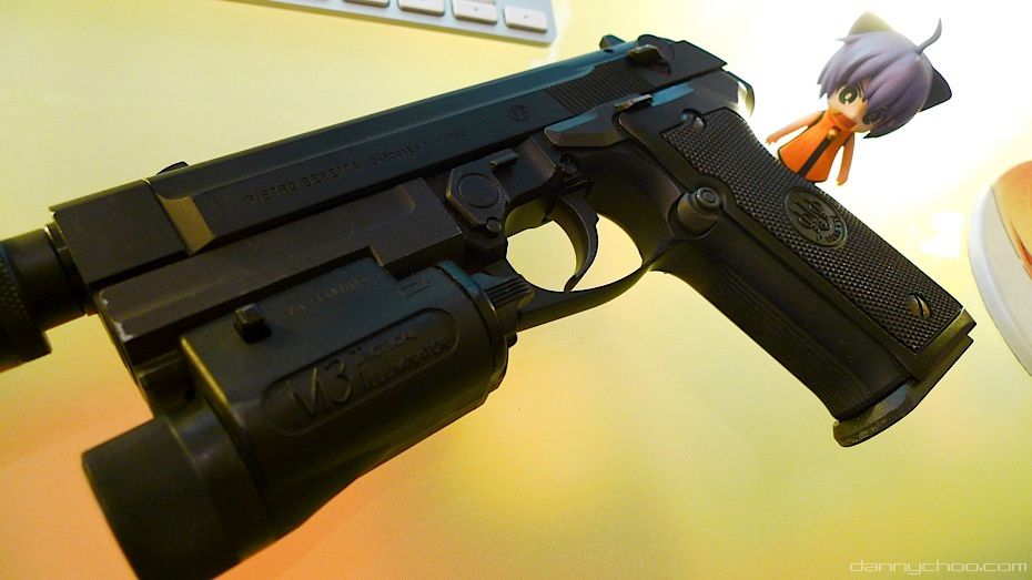 This is my Beretta - weighs about 1.5 - 2kgs which I got after getting an urge to own a Socom when playing too much Metal Gear Solid. All the Socom's at the time were sold out so I got this instead ^^;