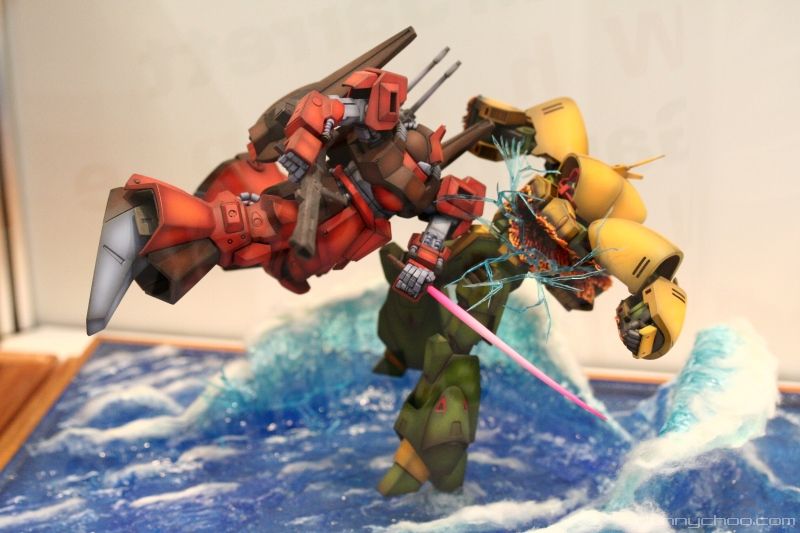 Today we are going to have a look at some of the models used in Hobby Japan magazine. My favorite in particular is the Destiny kit that you see in these pics – it was kind of crying out “break the glass and take me home!”