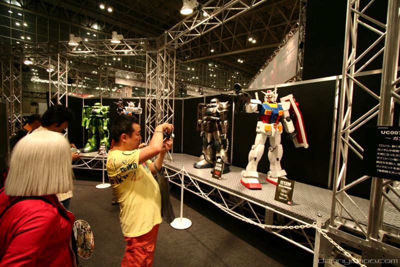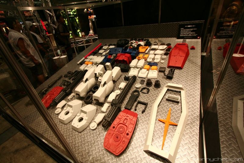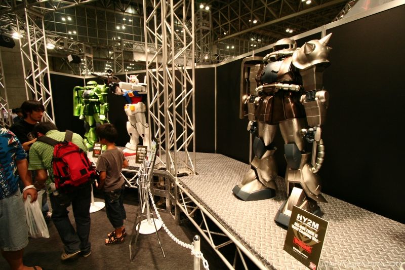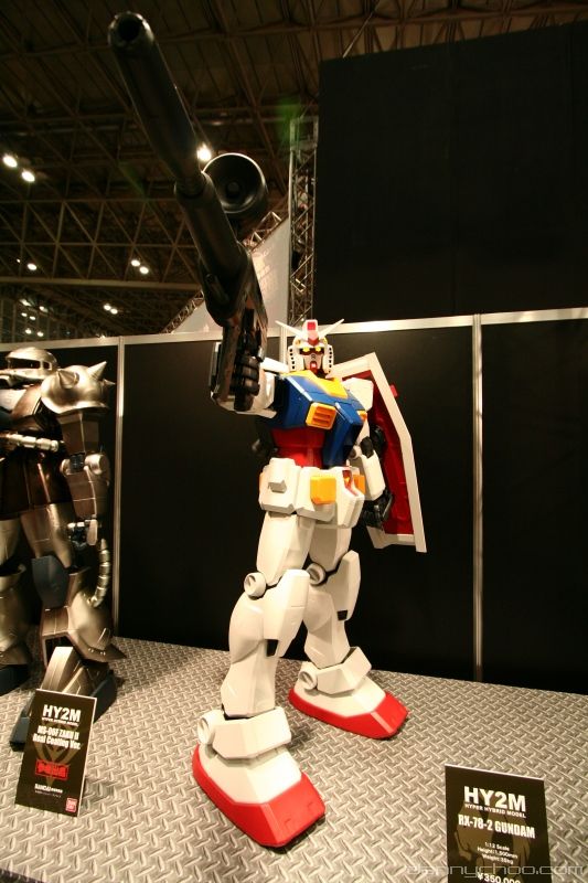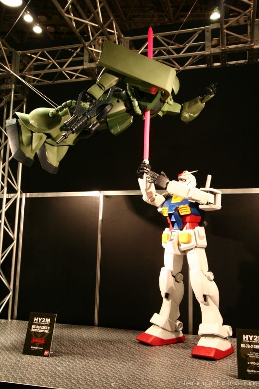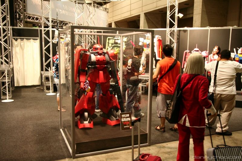 The humongous HY2M was on display at Chara Hobby along with other 1/12 scale red, green and silver Zaks. What I didnt know was that the HY2M comes with a remote to control a ton of present Gundam type sounds like the vulcan cannons, explosions and farts. The eyes light up too and this one on display had some coolsome decals - which probably come with the kit.