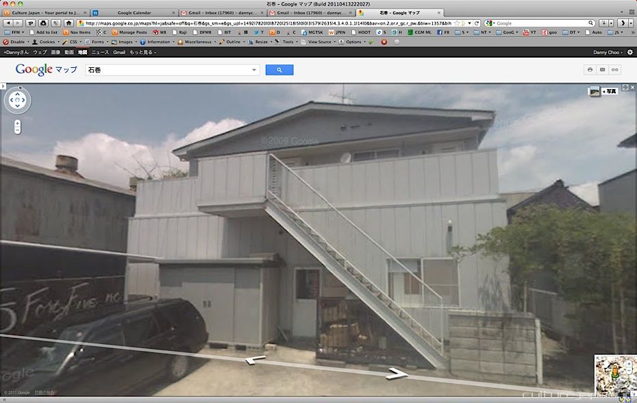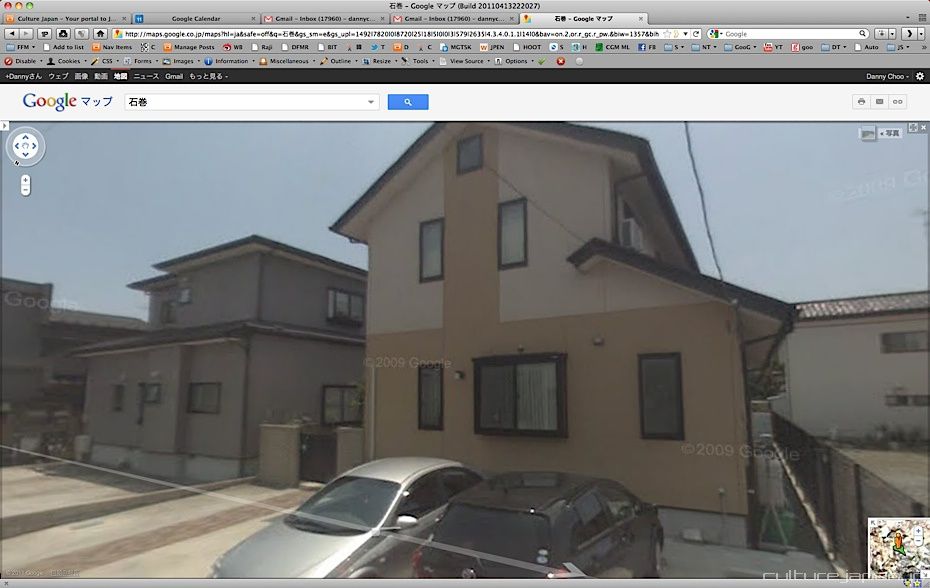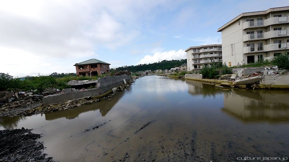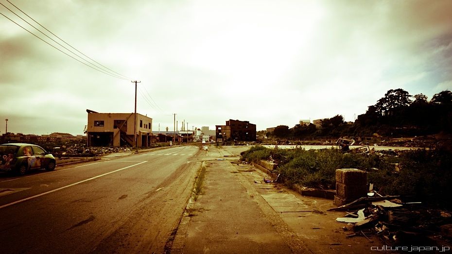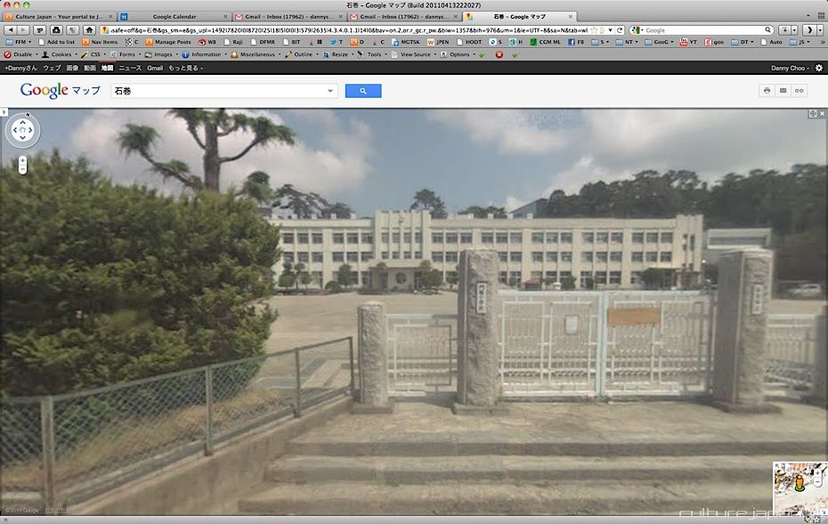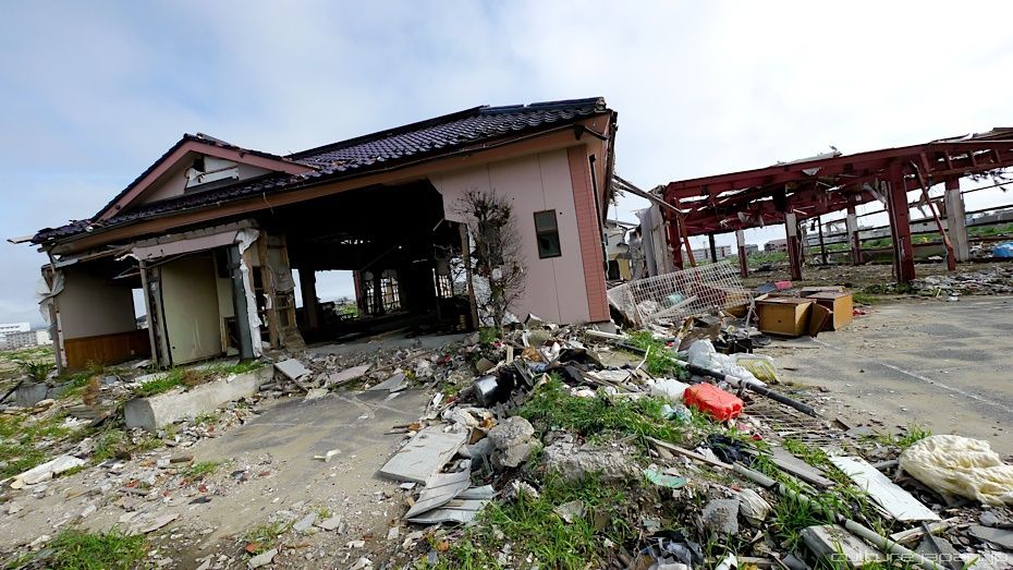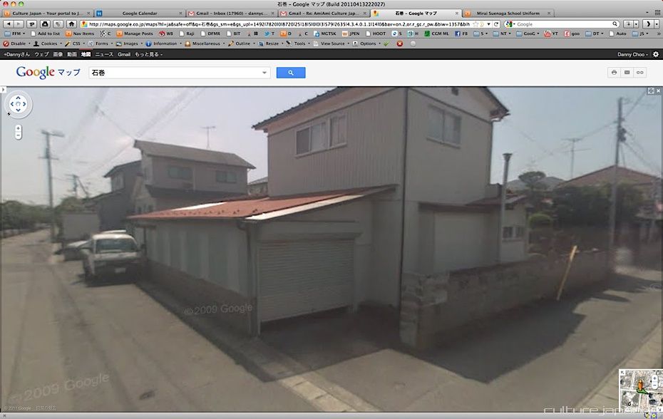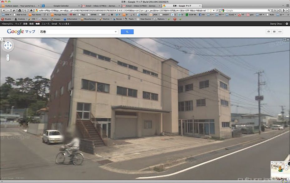Continuing with the coverage from ground zero at Ishinomaki 5 months after the Tohoku Kanto Earthquake. This Google Map shows Kadonowaki-cho and the Minamihama-cho area - as you can see, most of it was destroyed by the tsunami which traveled 600 meters inland at about 10 meters high.