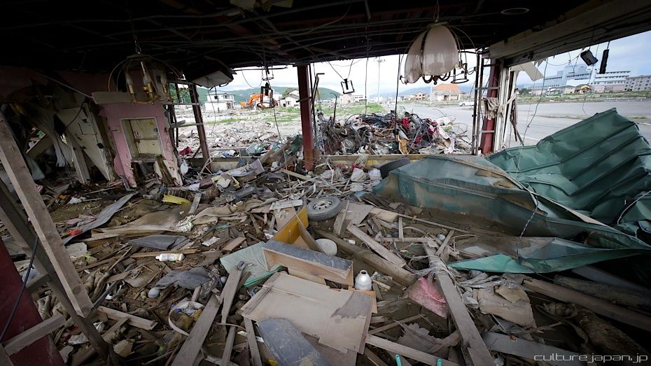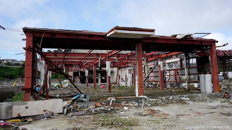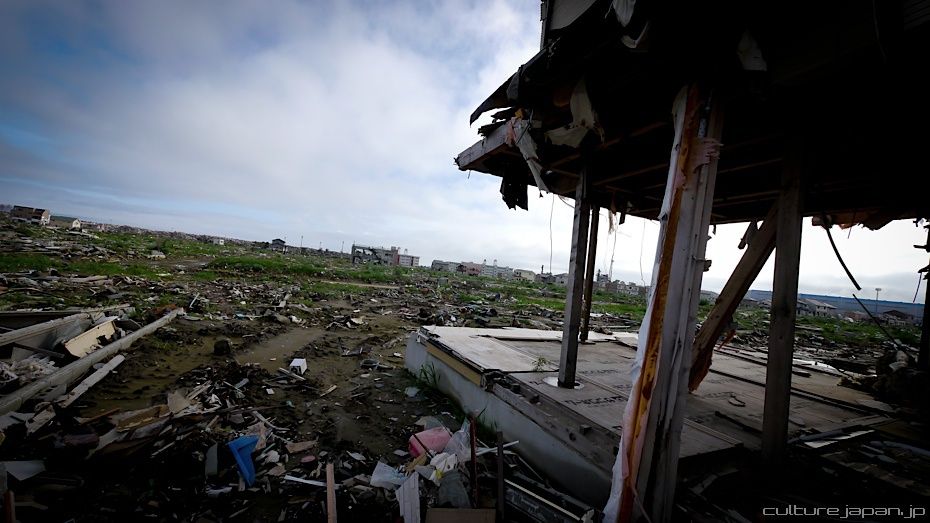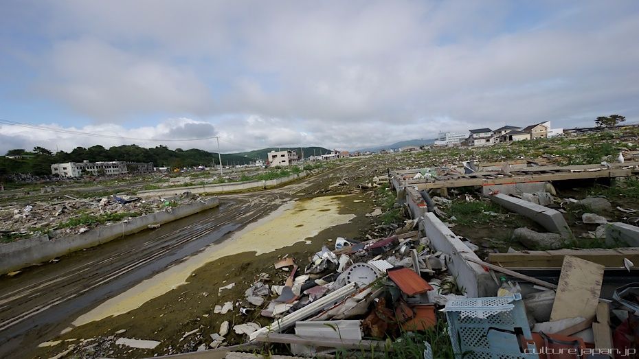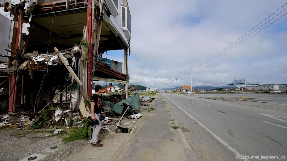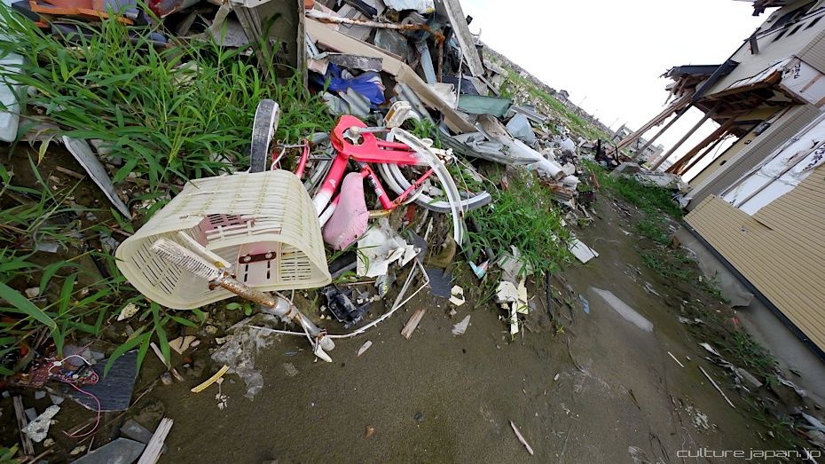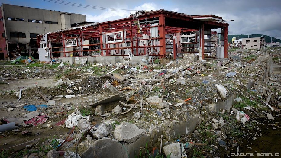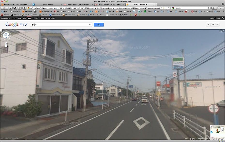 Continuing with the coverage from ground zero at Ishinomaki 5 months after the Tohoku Kanto Earthquake. This Google Map shows Kadonowaki-cho and the Minamihama-cho area - as you can see, most of it was destroyed by the tsunami which traveled 600 meters inland at about 10 meters high.