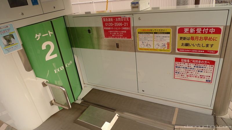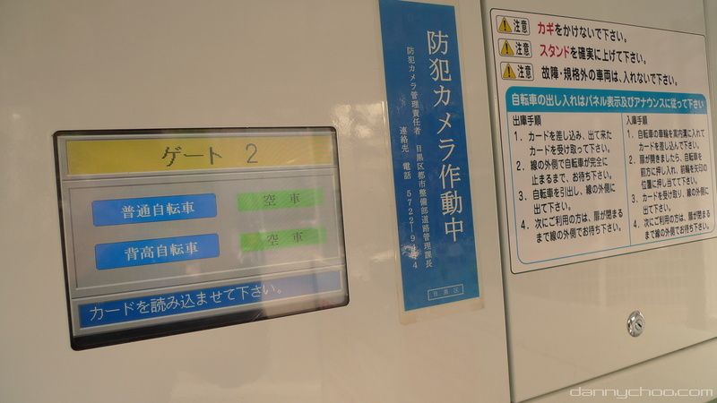 At each gate there is a simple card reader. One has to take out a monthly contract to use these ones but there are some around Tokyo where anybody can park their bicycle.