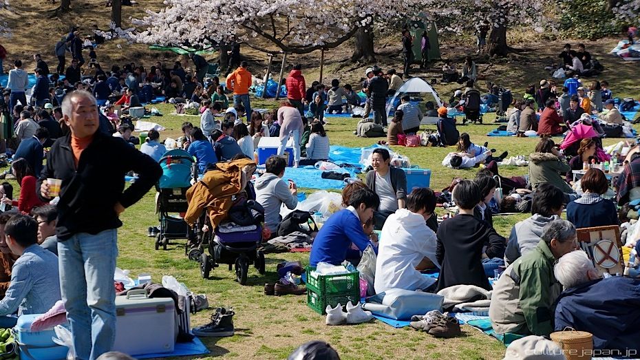 Cherry blossoms in Japan only last a couple of weeks. Folks usually flock to spend time walking and talking under the blossoms - this is known as Hanami .