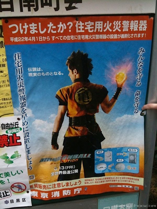 Interesting to see that the live action Dragonball is being used to promote fire and smoke detectors by the Tokyo Fire Department.