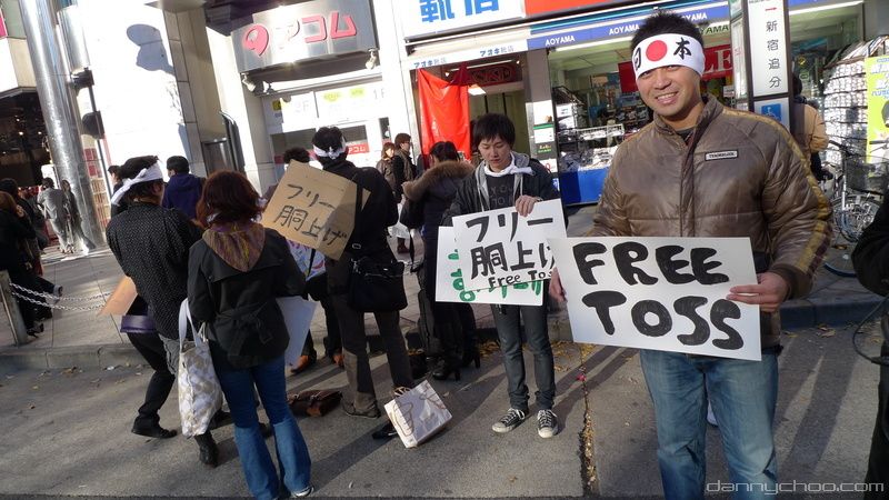 Seen the Free Hugs in Tokyo for many a moon now but this was the first time I saw "Free Toss" where they toss you in the air.