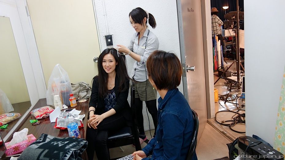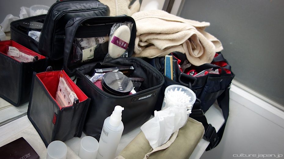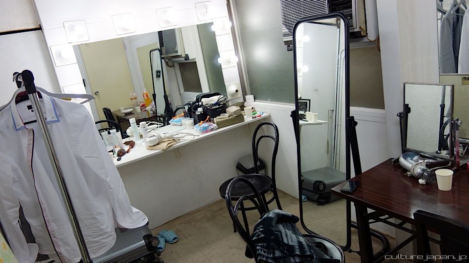 In the changing and makeup room. This room is alo known as "Gakuya" ].