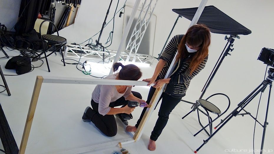 The art folks preparing for closeup filming of products used in the show.