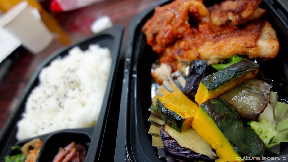 Dinner arrives for everybody - the traditional bento box.