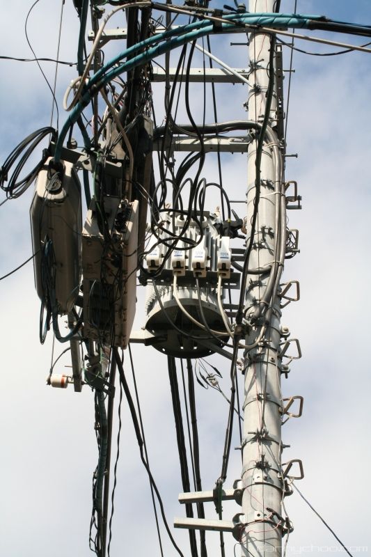 When we moved into our house, the telephone company had to climb up one of these poles and
