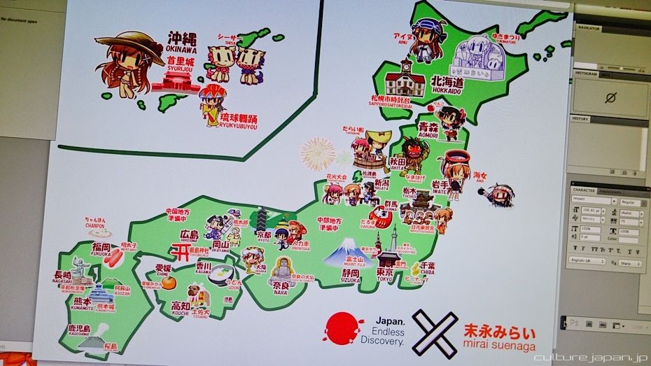 Announced at AFA13 and Culture Japan Night Singapore, our first collaboration will be a series of printed maps of Japan. As you know, our Culture Japan mascot character