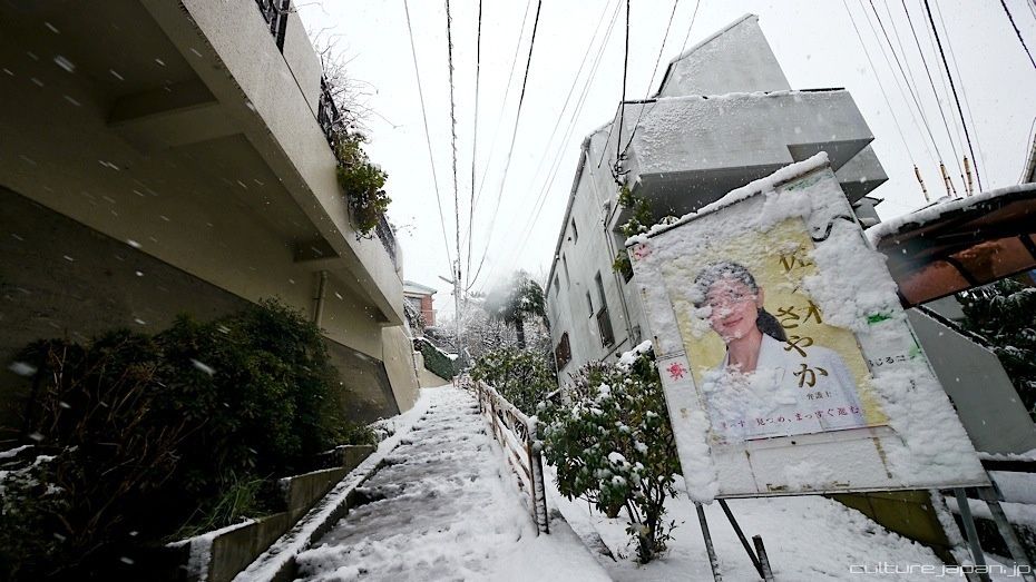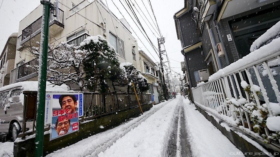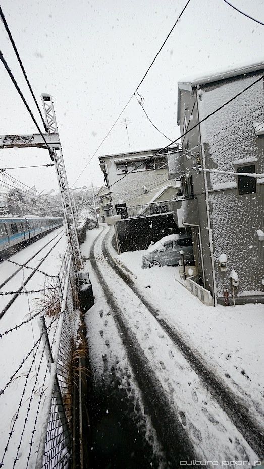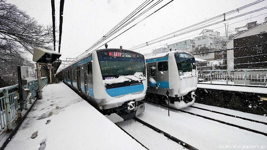 Its been snowing in Japan a lot and we got a load of snow around the Yokohama and Tokyo area. Tokyo had 8cm of snow while Yokohama had 14cm. Some places in Japan got 40cm of snow within 24 hours. Many flights were cancelled and trains grounded to a halt just like the ones in this photo.