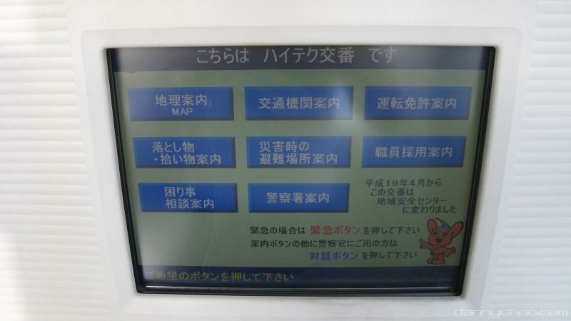 But despite the axe incidents of late, the crime rate in Japan is still relatively low - so low in fact that police stations like this one (called "Koban") don't have any human police stationed - just a unit inside called "Hi-tech Koban."