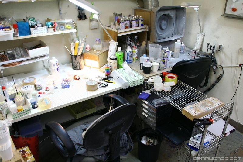 The sculptors desk full of other stuff that cant be shown right now.