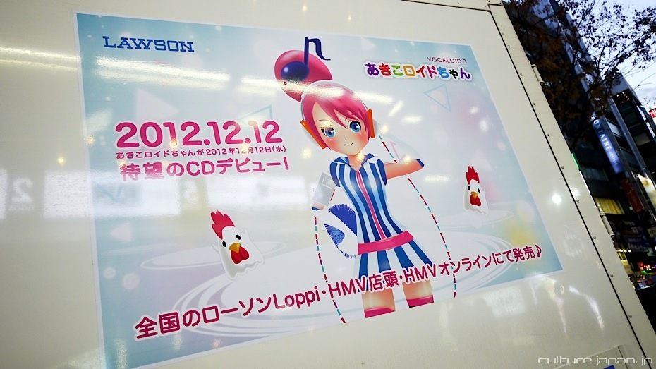 LAWSON have their own mascot character called Akiko-chan which they have also made into a Vocaloid called Akikoloid-chan - check her out in action below.