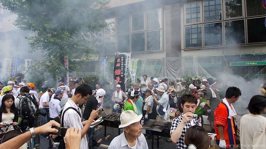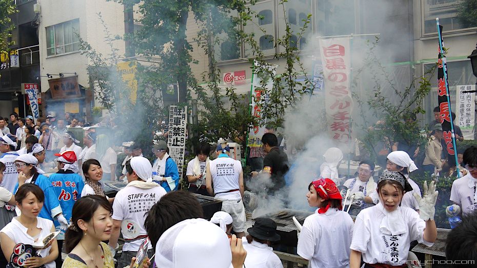 It is said that moons ago, a feudal lord was riding on his horse in Meguro and came across the smell of some Sanma being grilled. When he asked the local peasants what it was, they replied that it was a fish called Sanma and that it was not appropriate for a lord to consume. The lord requested for some of this fish to be brought to him and he discovered how tasty this om nom nom Sanma was. The festival is said to celebrate this story.