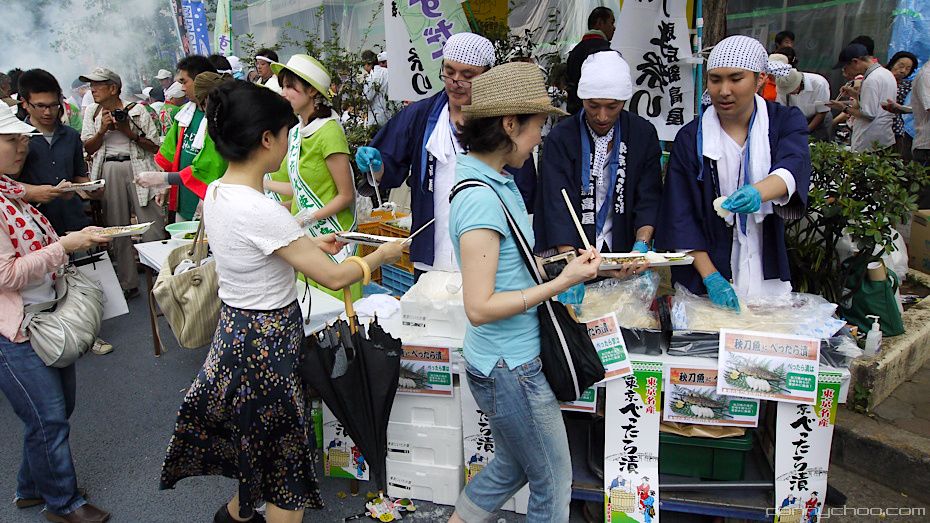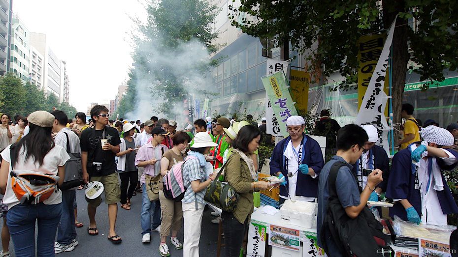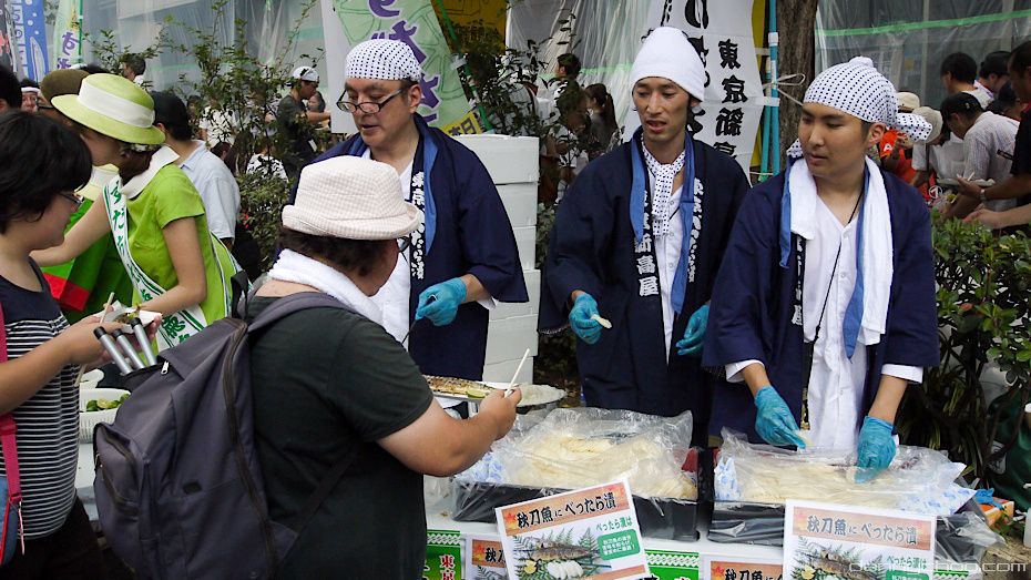 The Meguro Sanma Festival has been taking place every year since 1996. At the festival they give away about 7000 grilled Sanma fish (Pacific Saury) for free - you have to line up in the 1 kilometer queue though.