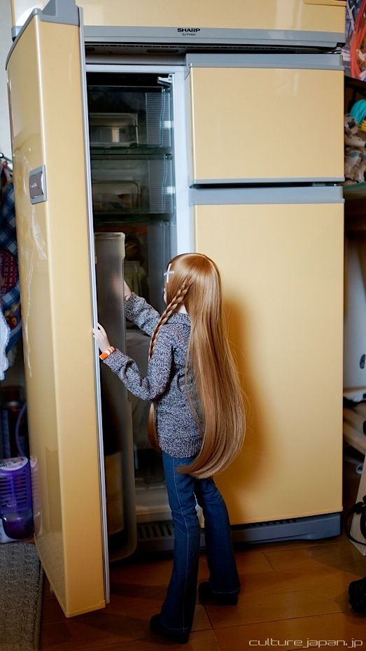 Mirai raiding the fridge exhausted after spending a few hours setting up the tree.